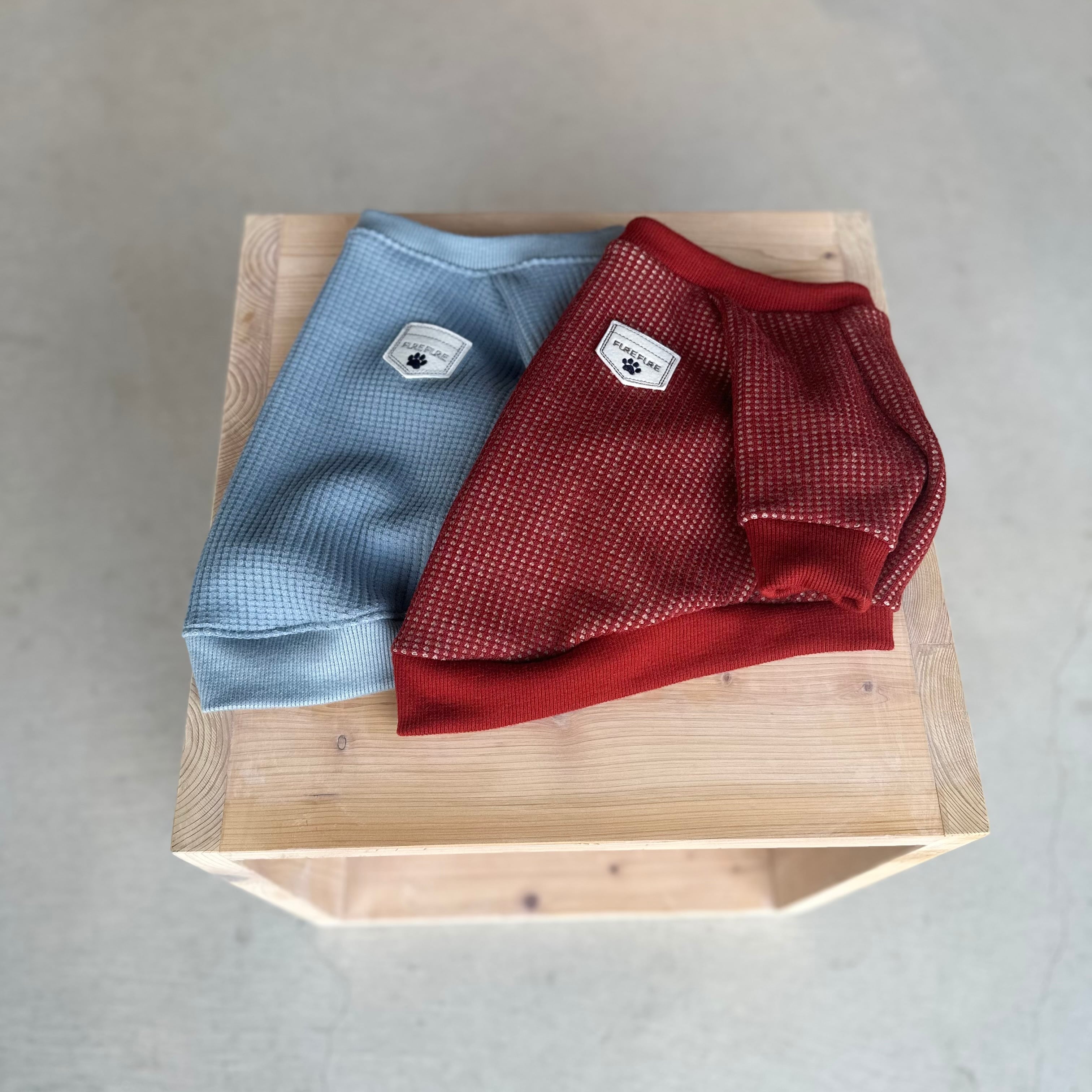 カラーは「くすみブルーのブルー」と「レンガカラーのレッド」の2色。