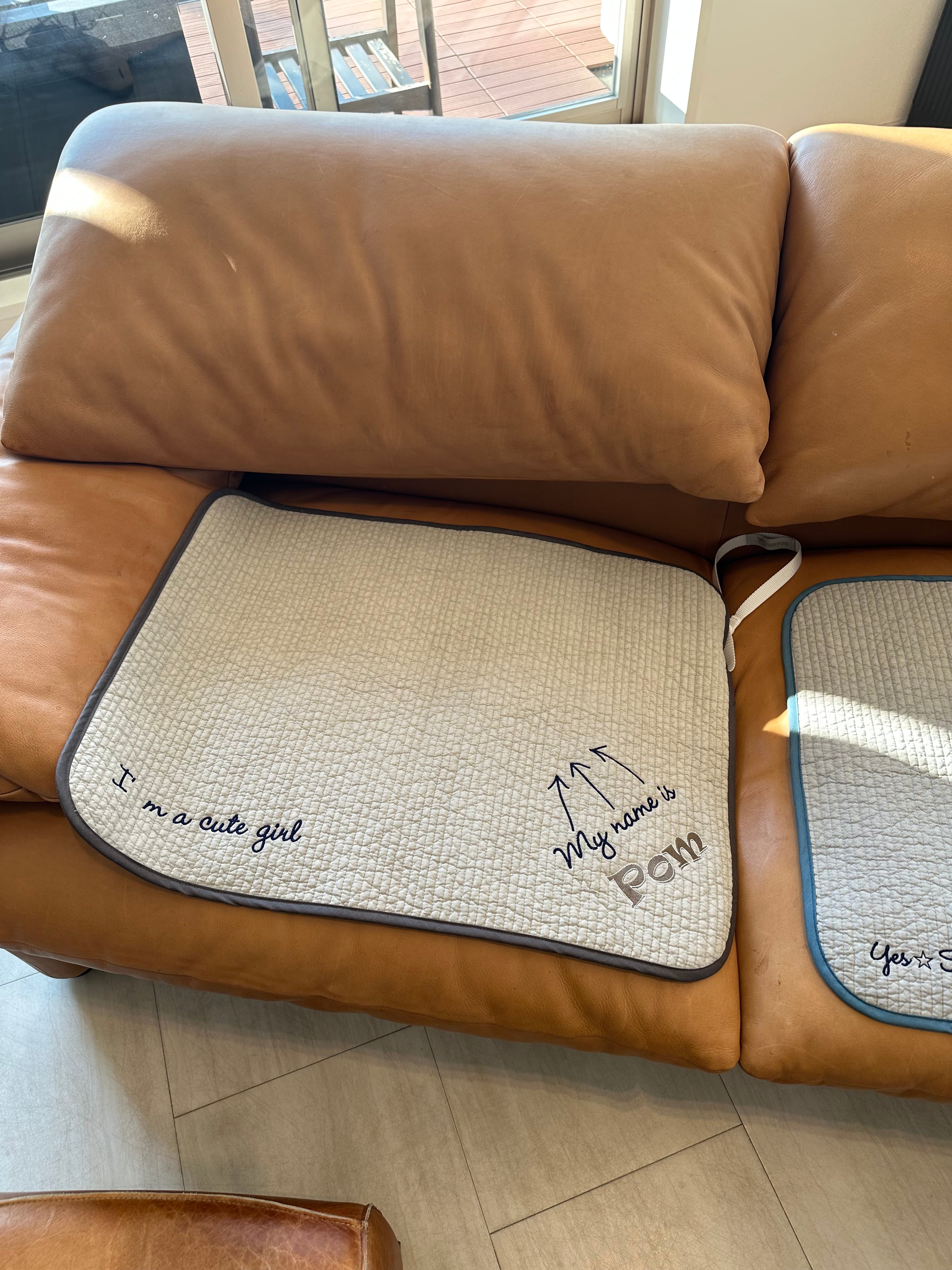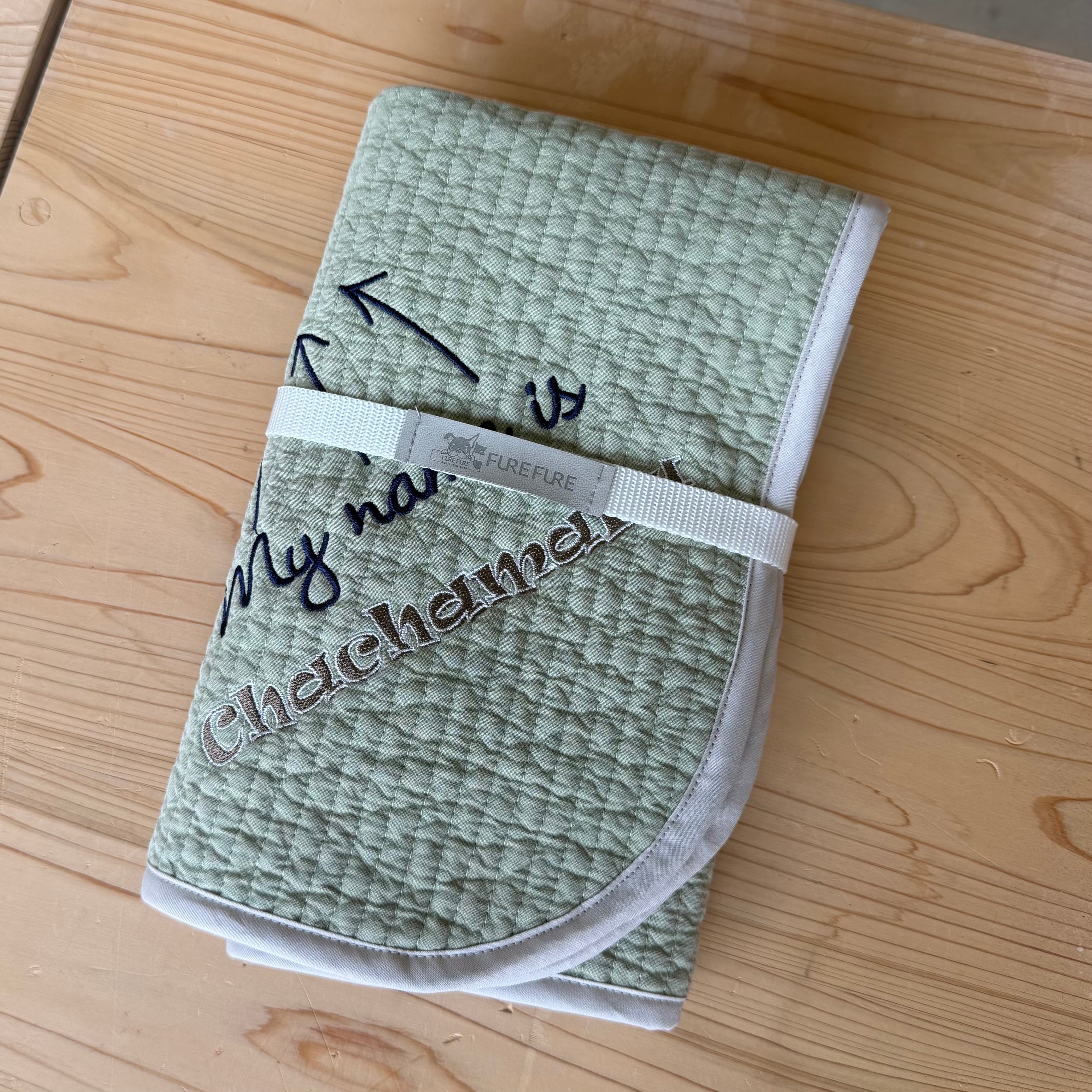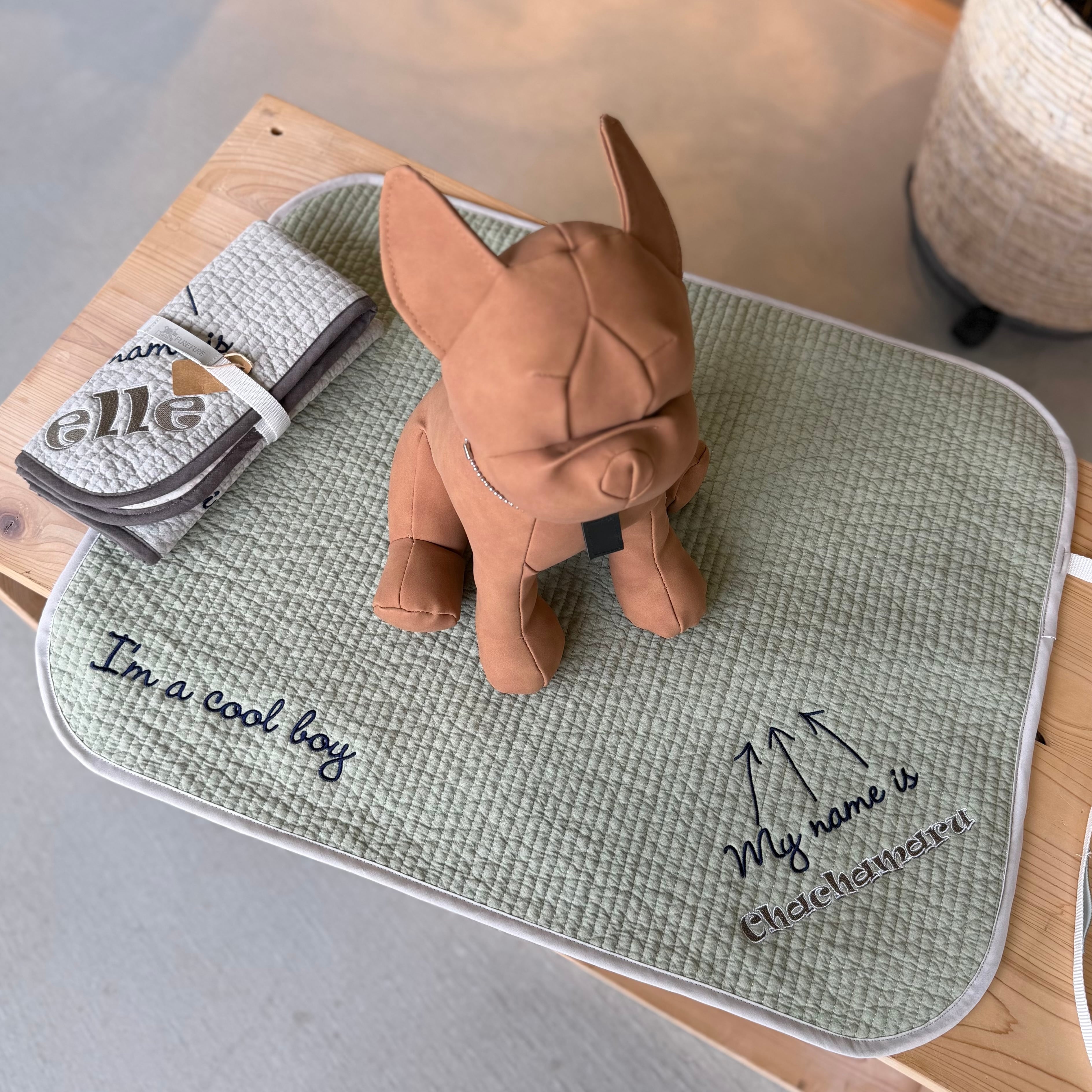 名前を刺繍できるので自分だけのカフェマットが出来上がります。(アルファベットのみです)